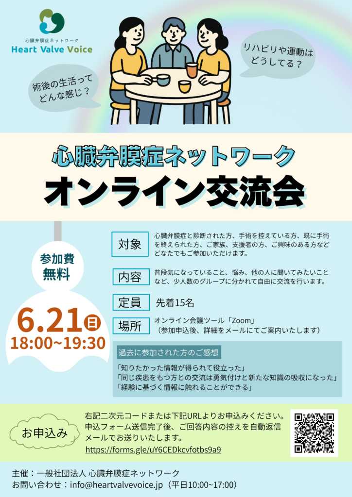 【心臓弁膜症ネットワーク】6/21(日)オンライン交流会を開催します